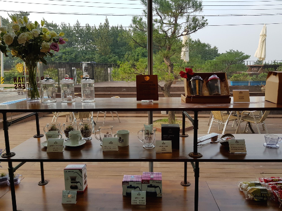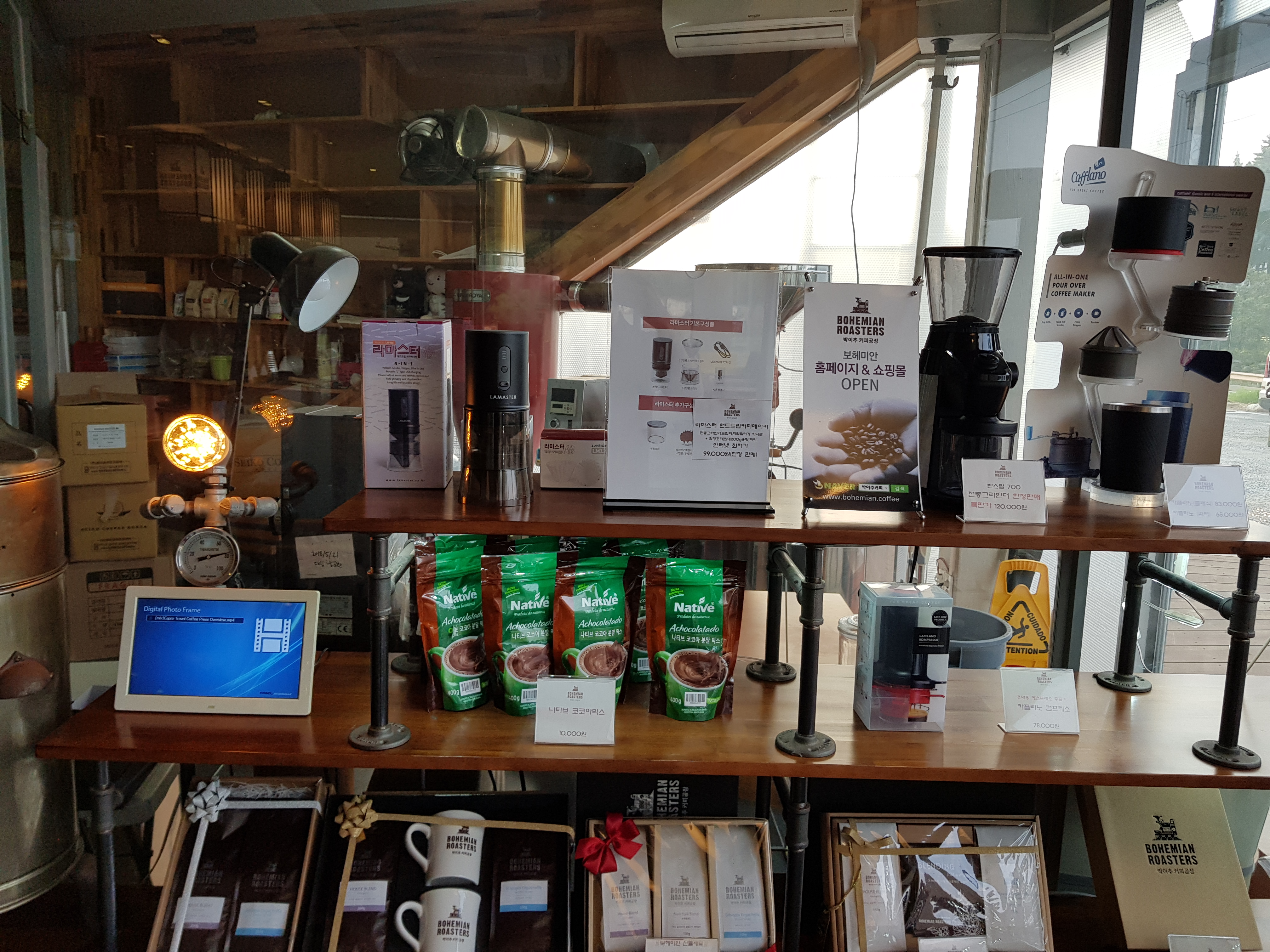 실내 2층 테이블에서는 옆에 실내 커피공장이 내려다 보인다. 여기서 직접 커피를 만드나 보다.