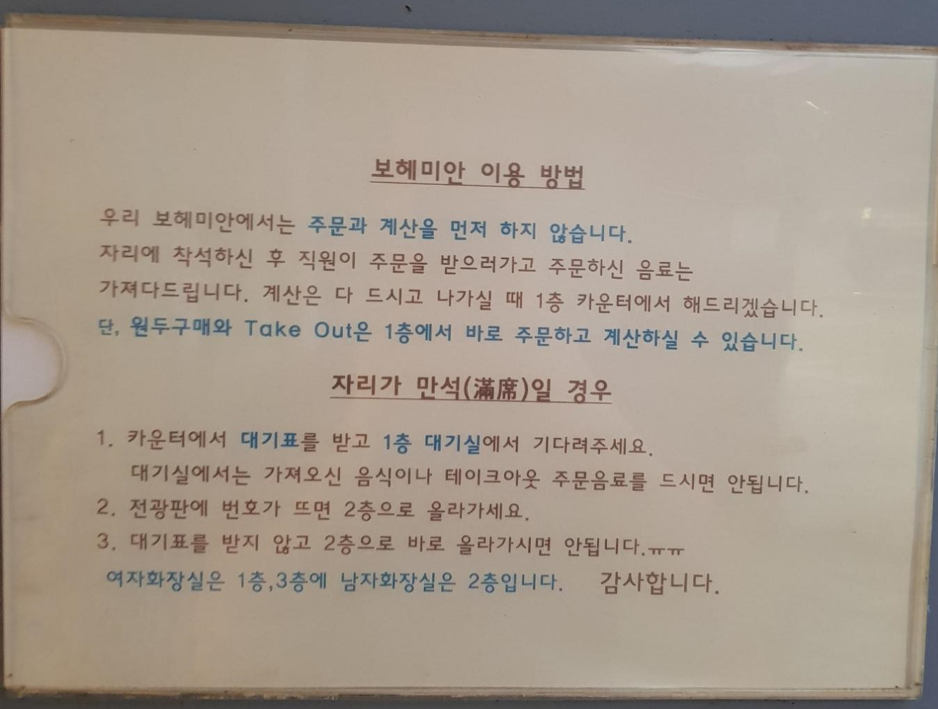 이용방법 ㅋ 자리에 앉으면 직원분이 주문을 받으러 온다. 굿굿