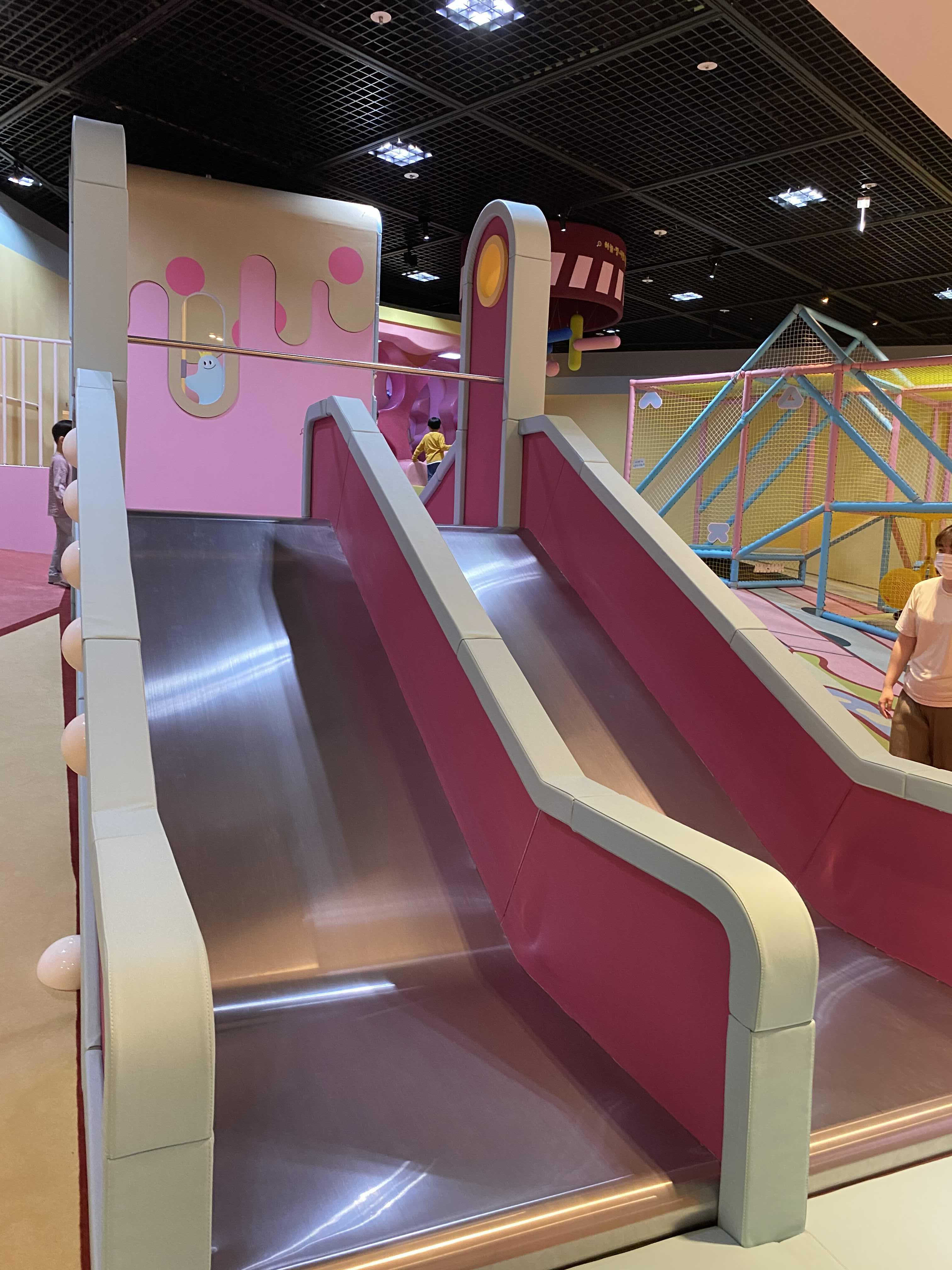 미끄럼틀, 그물놀이터 같이 키즈카페 못지않은 시설들에다가 한타임이 끝날때마다 모든 시설을 다 소독하고 있어서 위생상태도 최상급이었다.