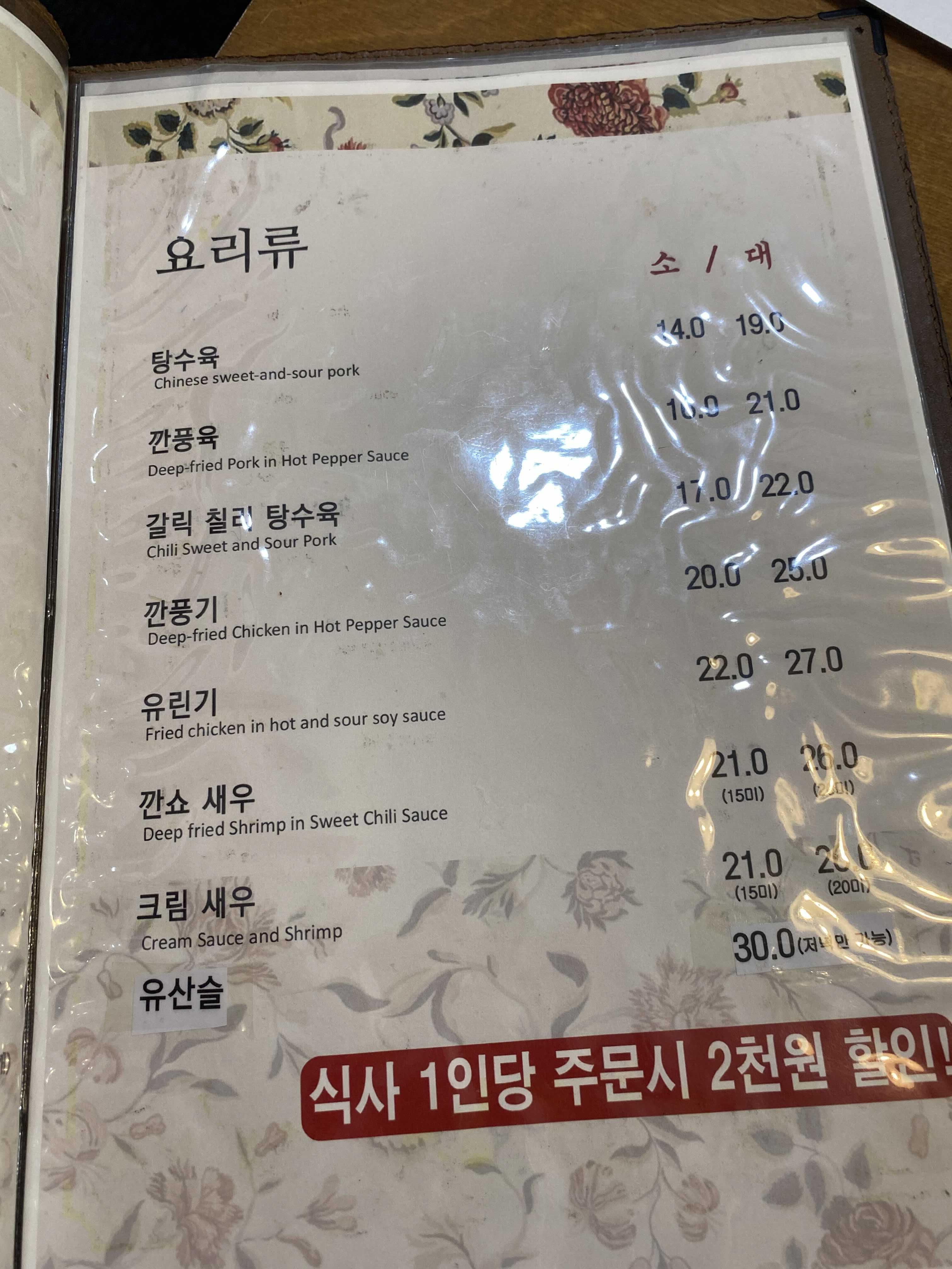 낮에는 식사류가 주로 나가는것 같았다.