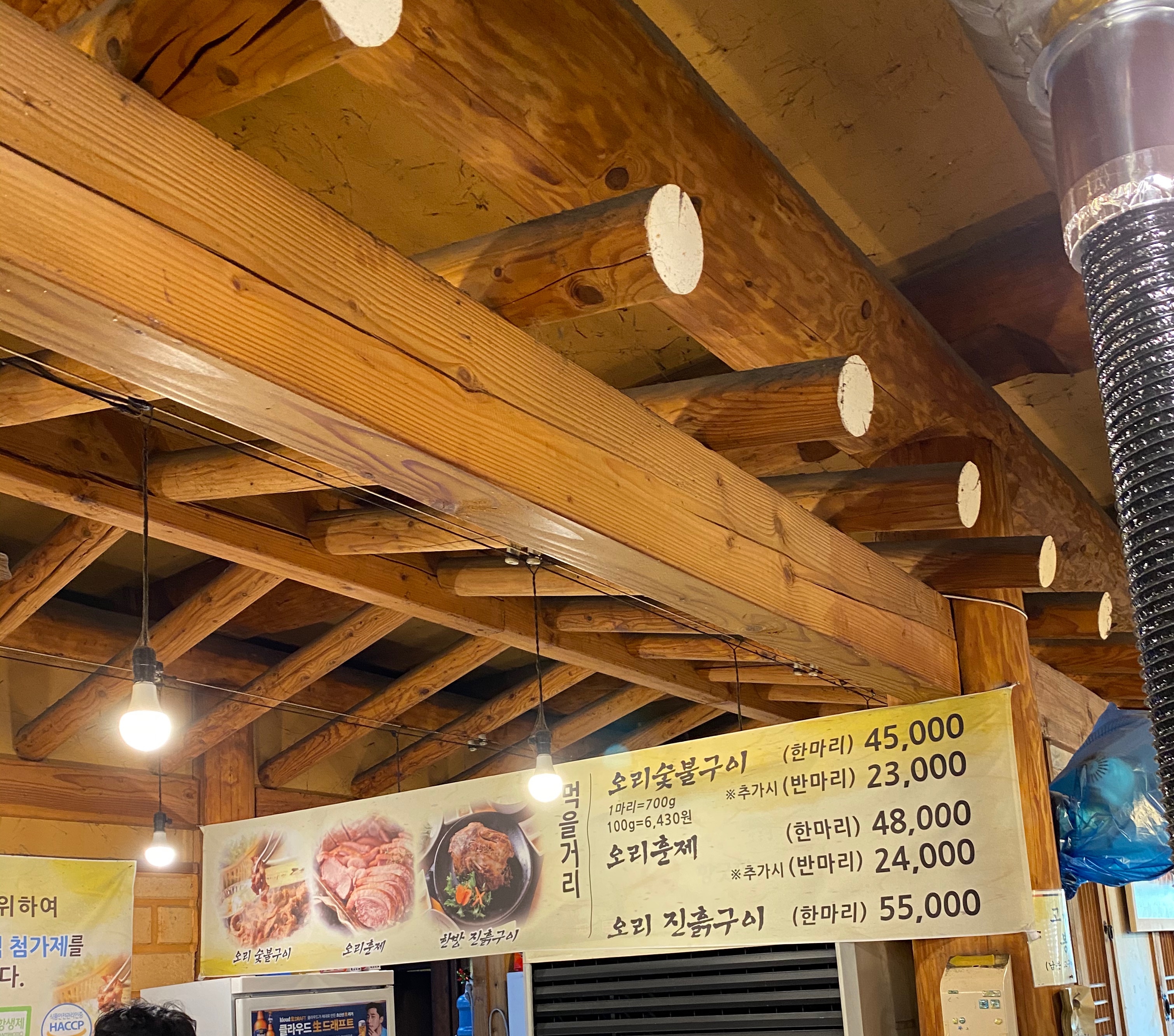 메뉴는 세가지이다. 오리숯불구이 오리훈제 오리진흙구이
