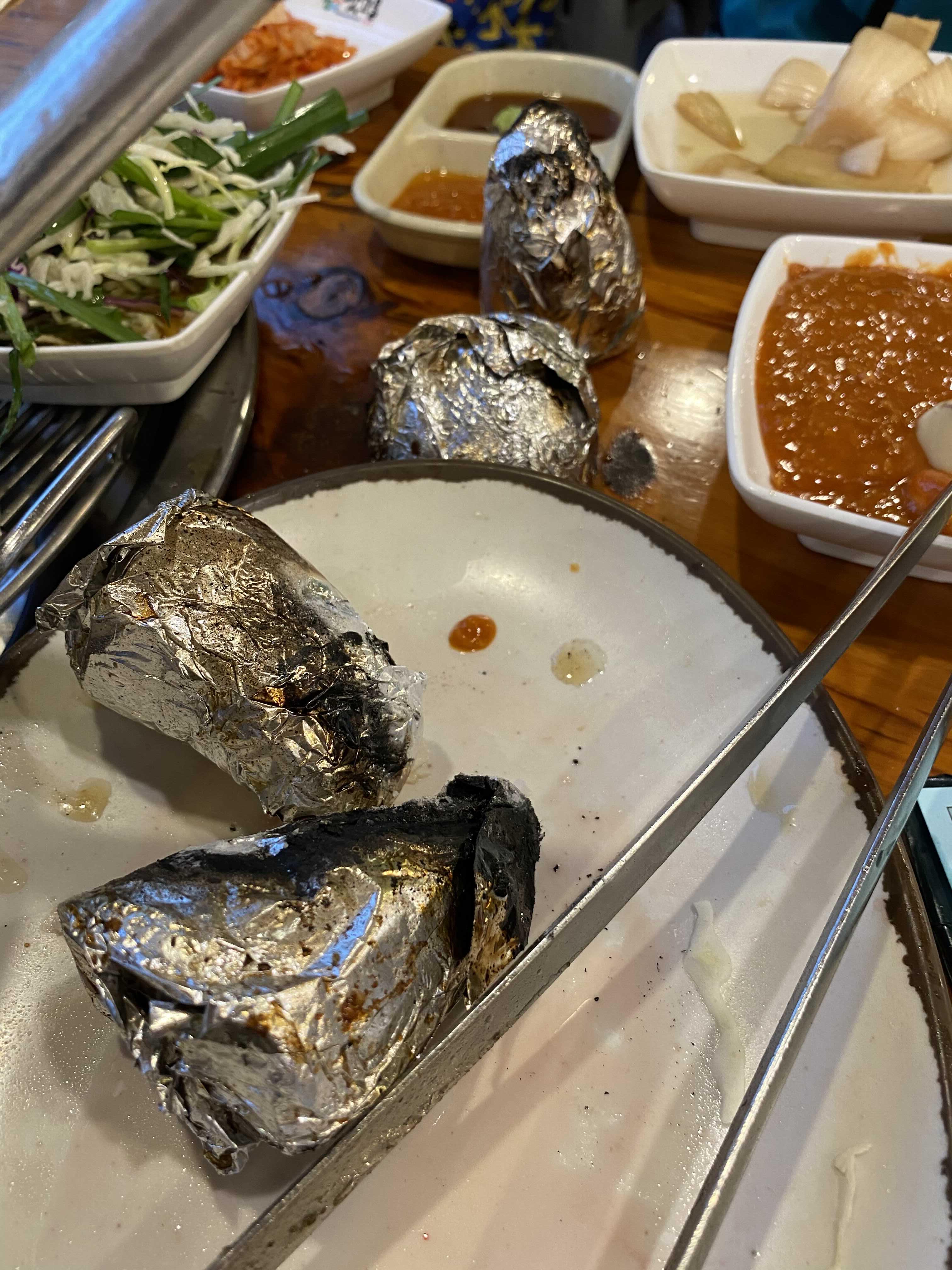 고기를 다 굽고 나서 호일에 싸여 구워진