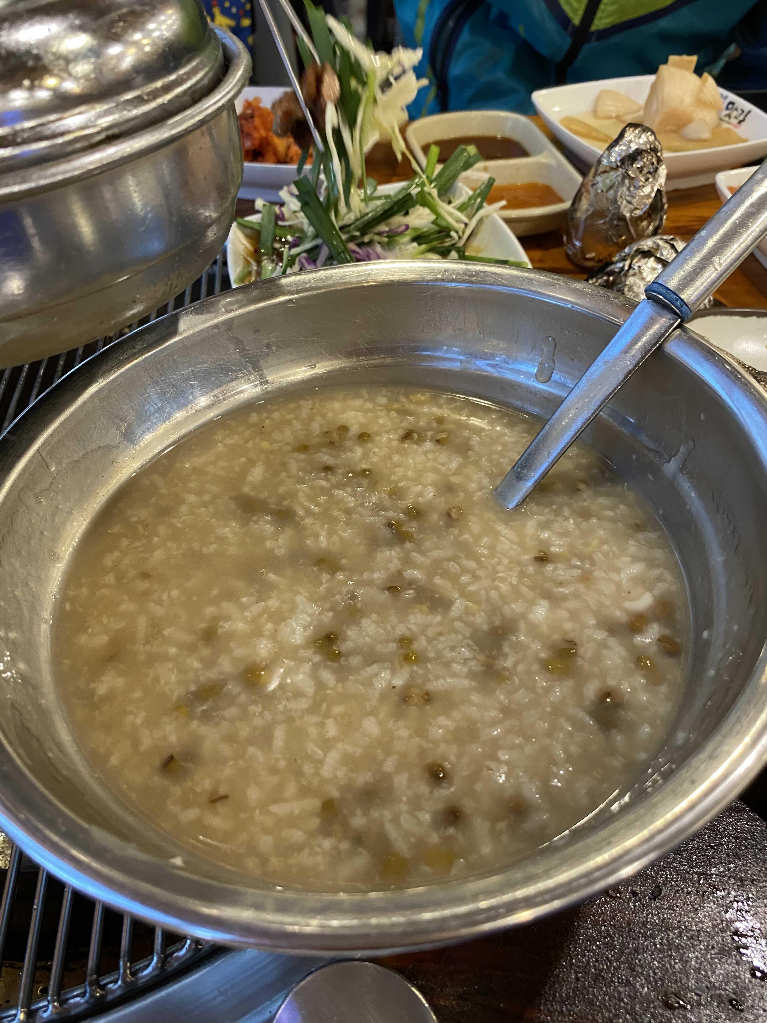 메뉴를 시키면 녹두죽과 군고구마를 주는데
