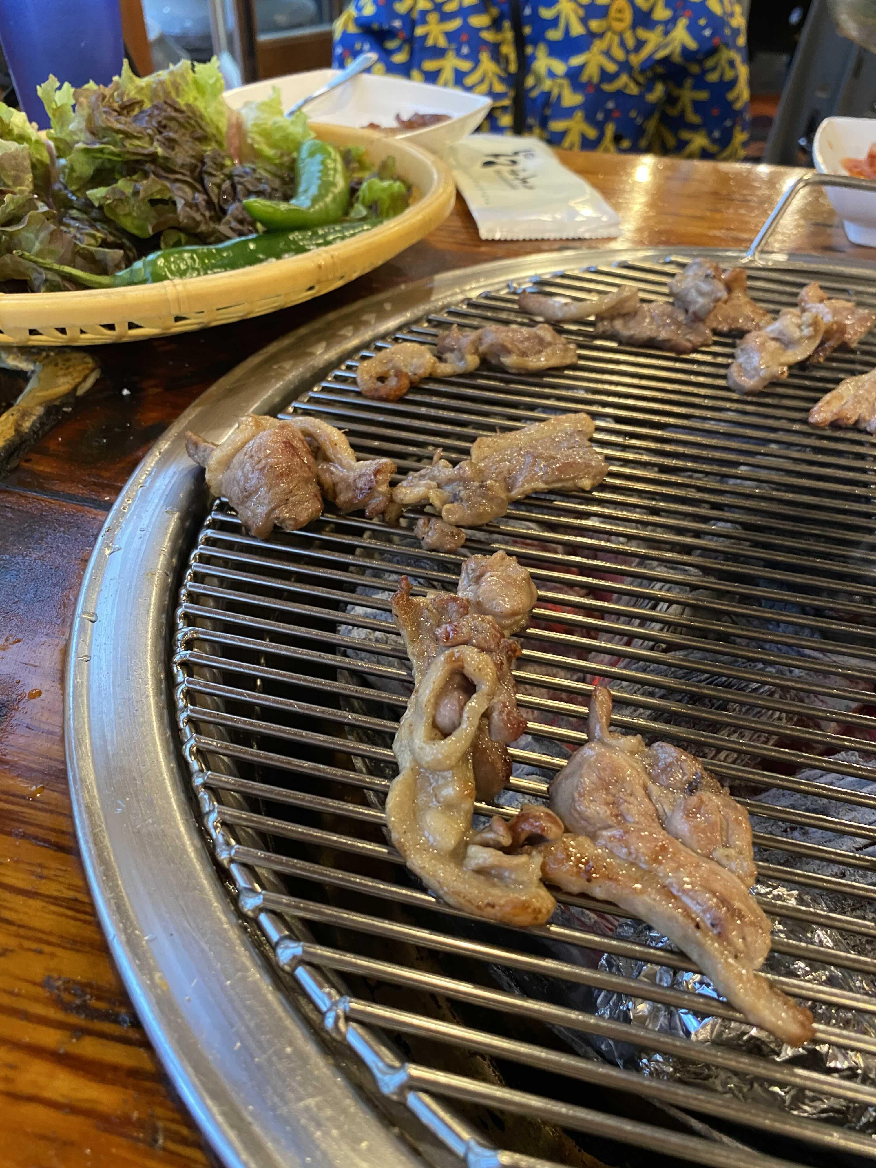 오리 숯불구이를 먹고 있었다.