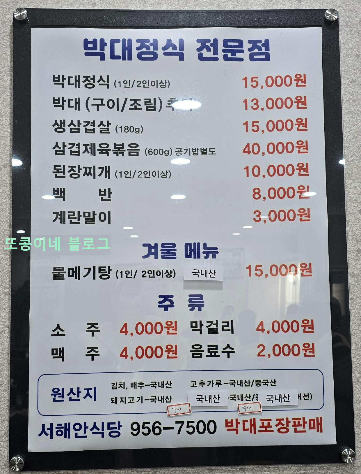 4인가족인데 애들이 어리므로, 이 집의 메인메뉴인 박대정식 3인분에 공기밥 하나 추가.