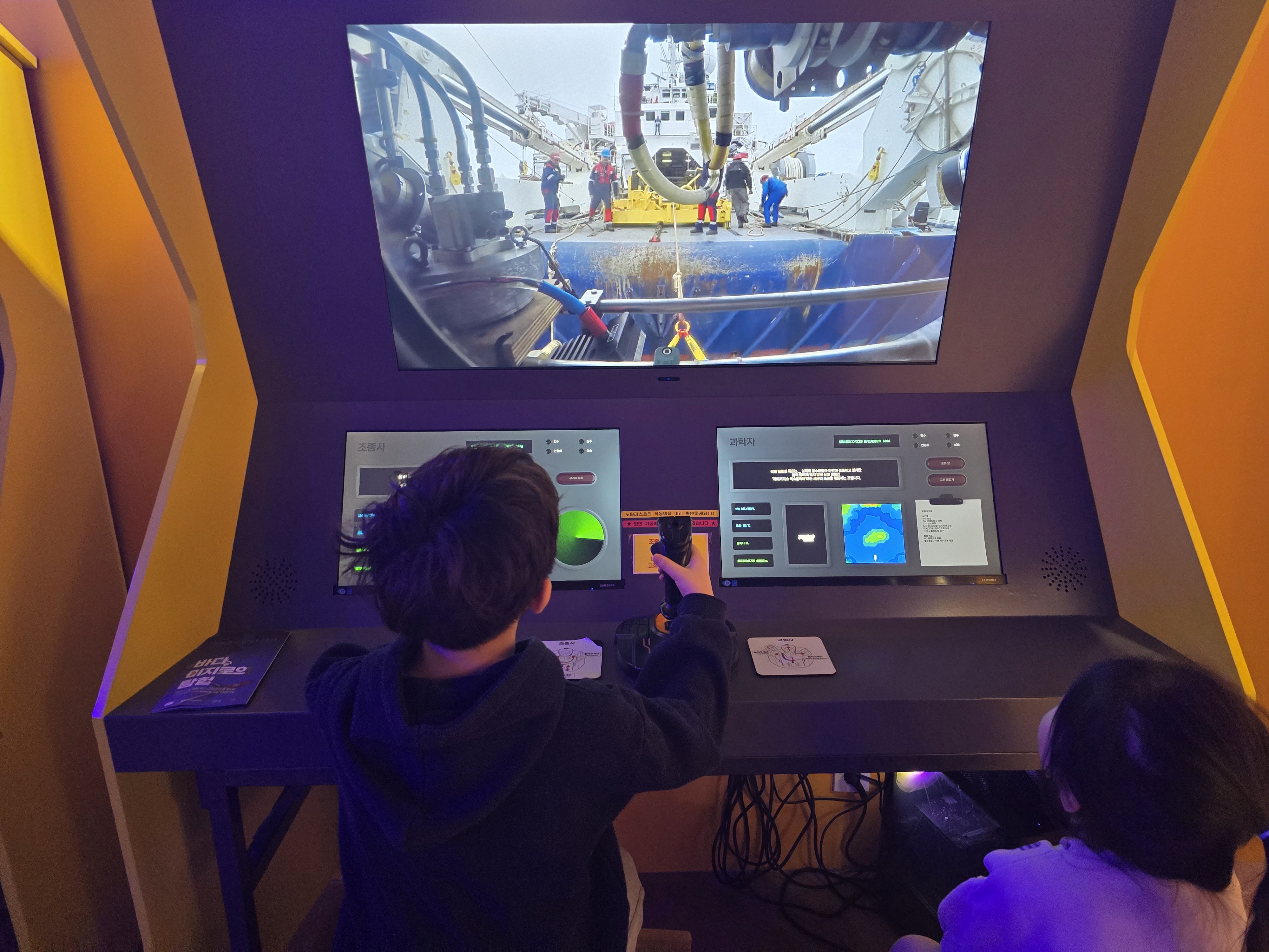 해저탐사선을 운전하여 바닷속으로 들어가 심해새우를 체취하는 작업을 시뮬레이션할 수 있게 되어 있다.