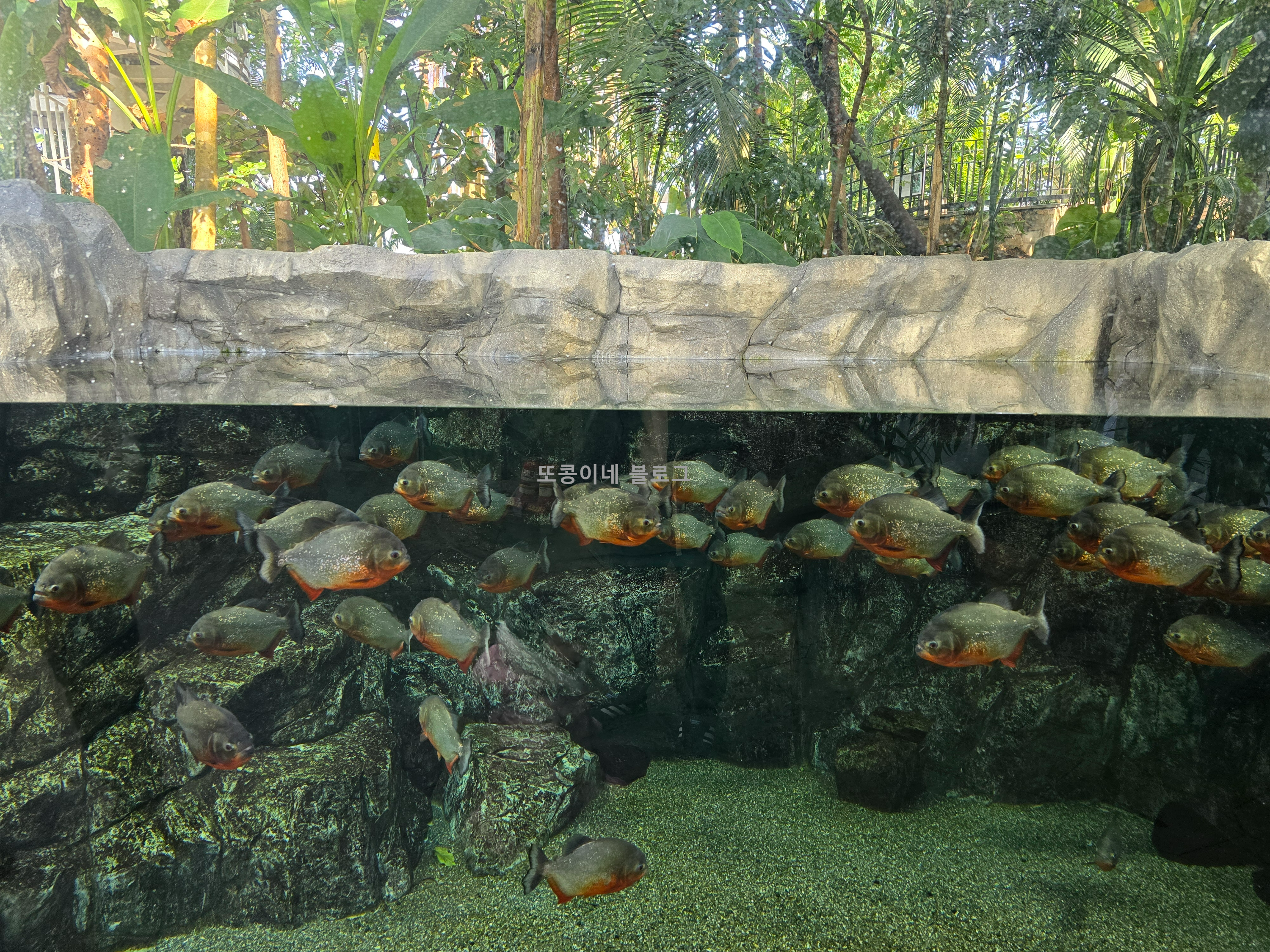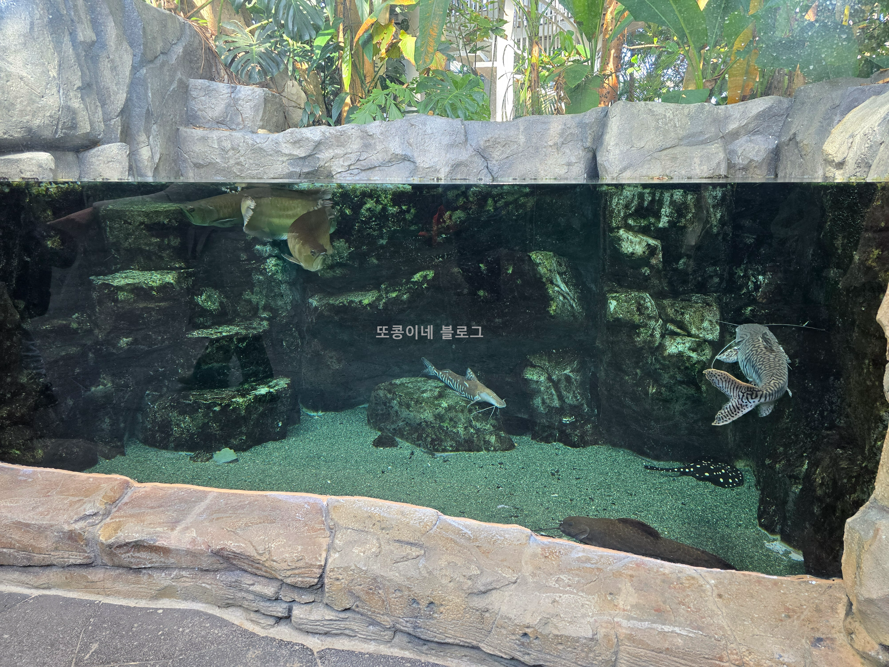 젤 처음 맞이해주는 곳은 열대관인데, 들어가자마자 피라니아 등 거대 민물어류들이 보인다.