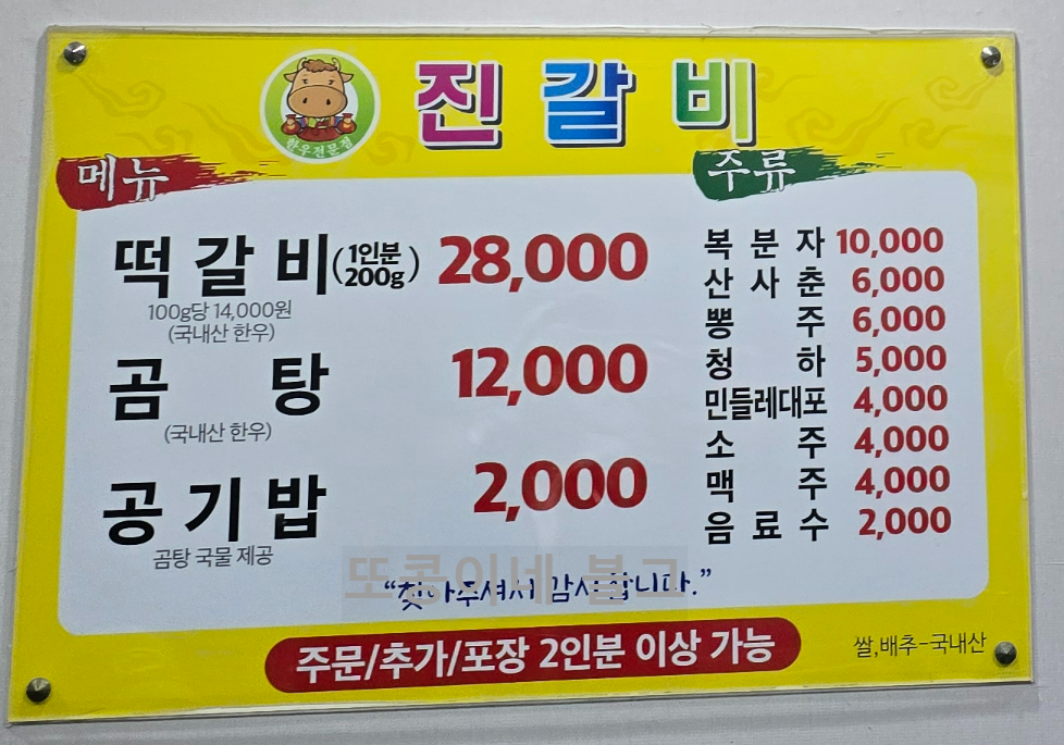 진갈비와 완주옥 중 후기를 참고하여 진갈비로 선택.