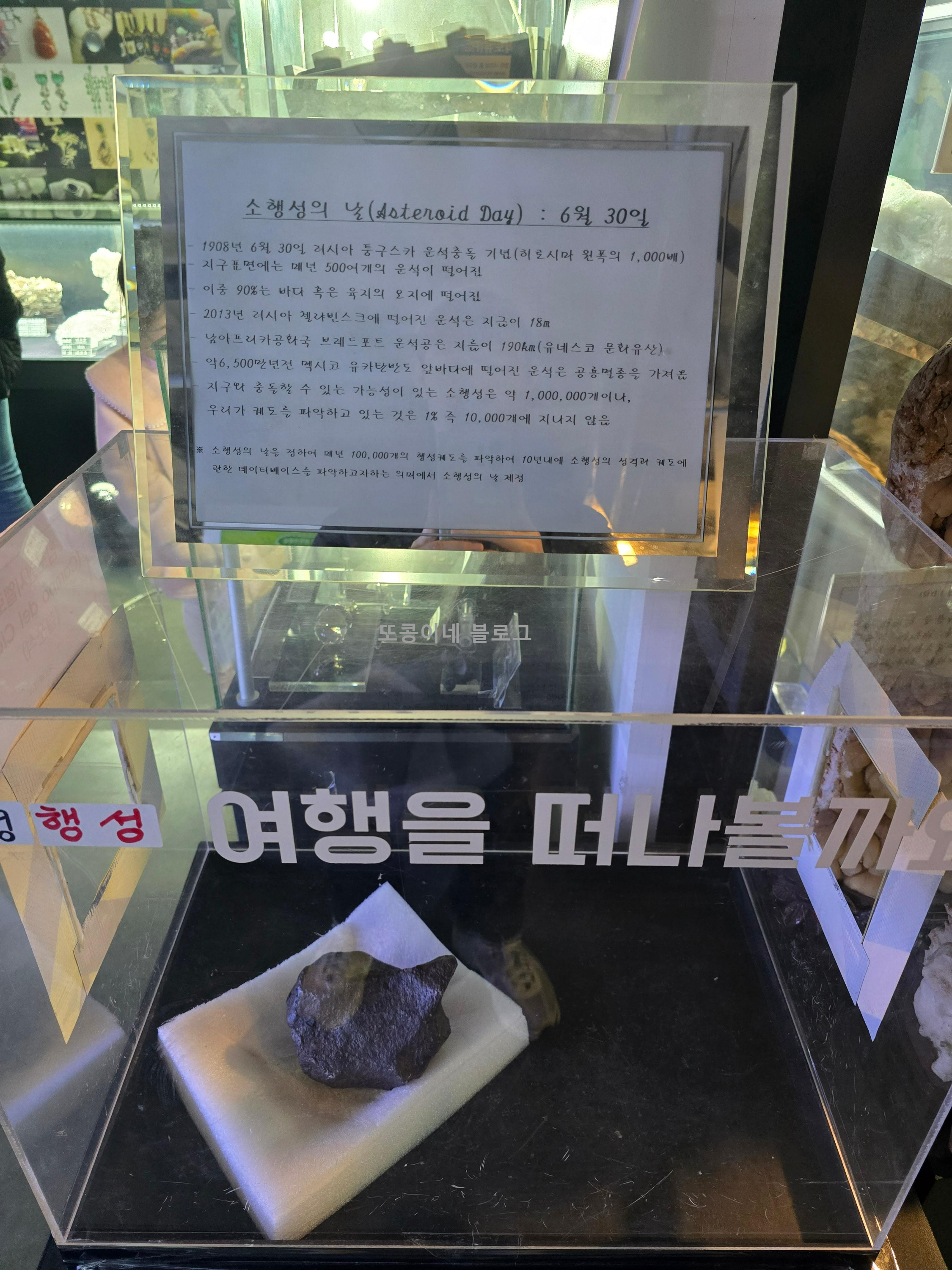 꽃 모양 화석의 돌, 어두운 곳애서 빛나는 형광광물, 나무가 오래되어 돌이된 암석, 운석, 화석 등 정말 다양한 보석과 광물이 가득하였다.