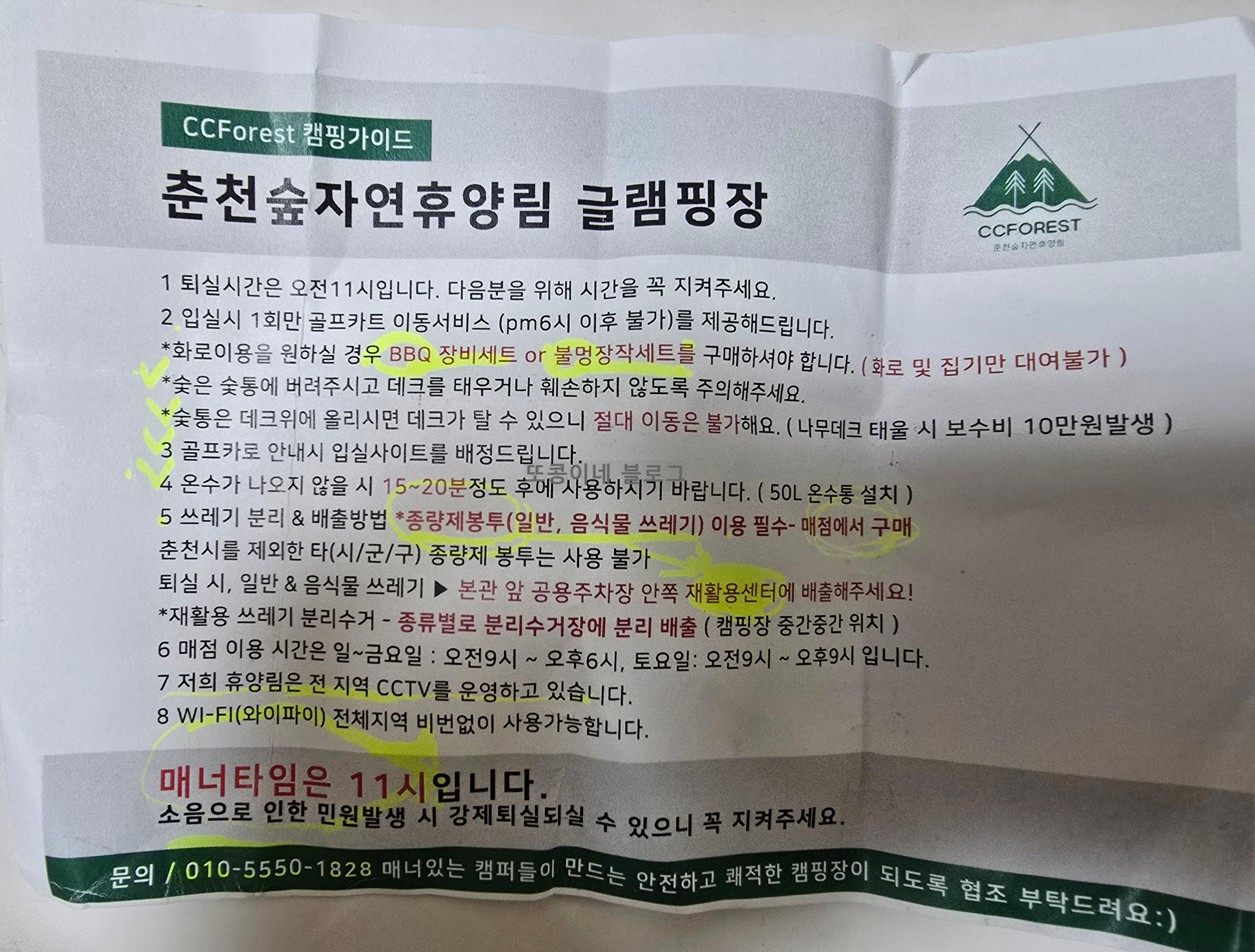 휴양림마다 그리고 동일 휴양림 내에서도 숙소 형태에 따라 가격이 다 다르다. 우리가 방문한 춘천숲 자연휴양림에 일반휴양관과 야영장, 글램핑장이 있다. 입구에 관리사무소에 들려 입실 확인을 하면 캠핑가이드를 준다. 관리사무소 바로 옆에 위치한 매점에 들려 BBQ장비세트와 불멍장작세트를 구매하고 예약한 글램핑장으로 이동!