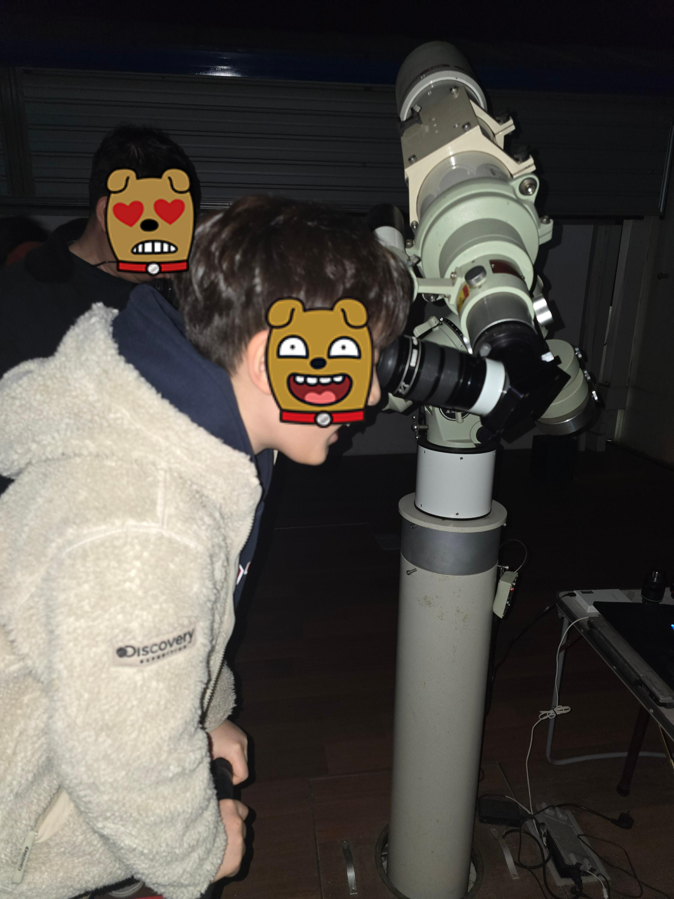 천장이 열리면 선생님께서 레이저로 밤하늘에 별을 하나하나 지목하며 설명해주신다. 신기하게도 레이저로 별을 지목하는 게 가능하다 ㅋㅋㅋ 북두칠성, 오리온, 시리우스 등 눈으로 볼 수 있는 별들이 생각보다 많다. 그리고 별자리를 지정하면 천체망원경이 자동으로 이동하여 별을 관찰할 수 있게 해준다. 시리우스는 정말 다이아몬드보다 더 환하게 반짝반짝 빛난다. 그리고 그냥 시리우스가 아니라 시리우스A이다. 시리우스B는 그 바로 뒤에 가려져 있다고 한다.