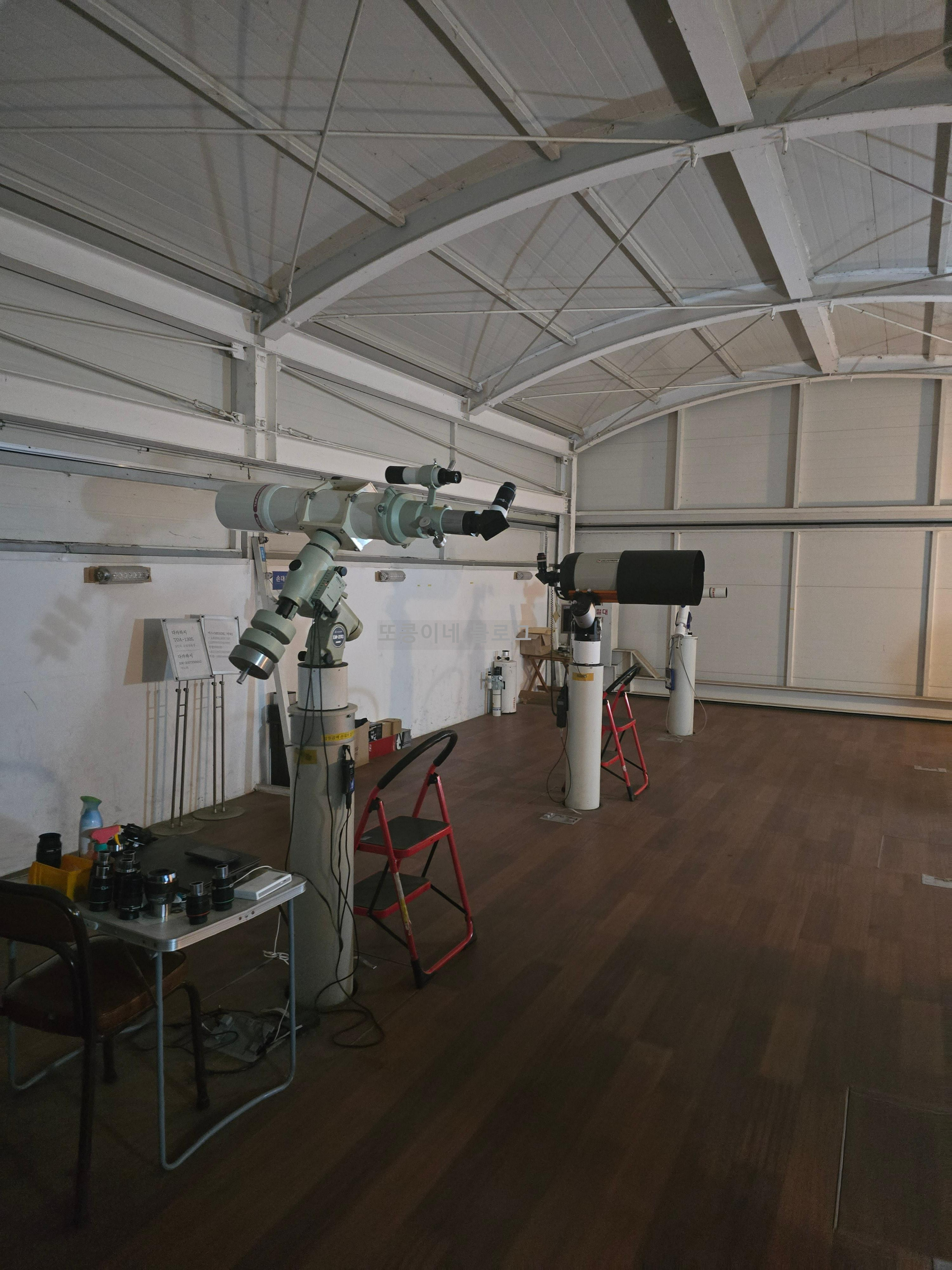 짧게 천문대 소개와 강의, 오늘 관측할 별들에 대한 설명 후, 드디어 3층으로 이동! 오늘 별 관측에 이용할 천체망원경이다. 근데 '이 천장이 있는 곳에서 어떻게 별을 관측하지??'라고 궁금해하는 순간 ㅋㅋㅋ 스타워즈 제국군ㅋㅋㅋ 다스베이터 등장 음악이 나오며 갑자기 천장이 열린다!!! 다들 신기함에 놀람과 흥분!!! 아이들 대흥분!!!ㅋㅋㅋ