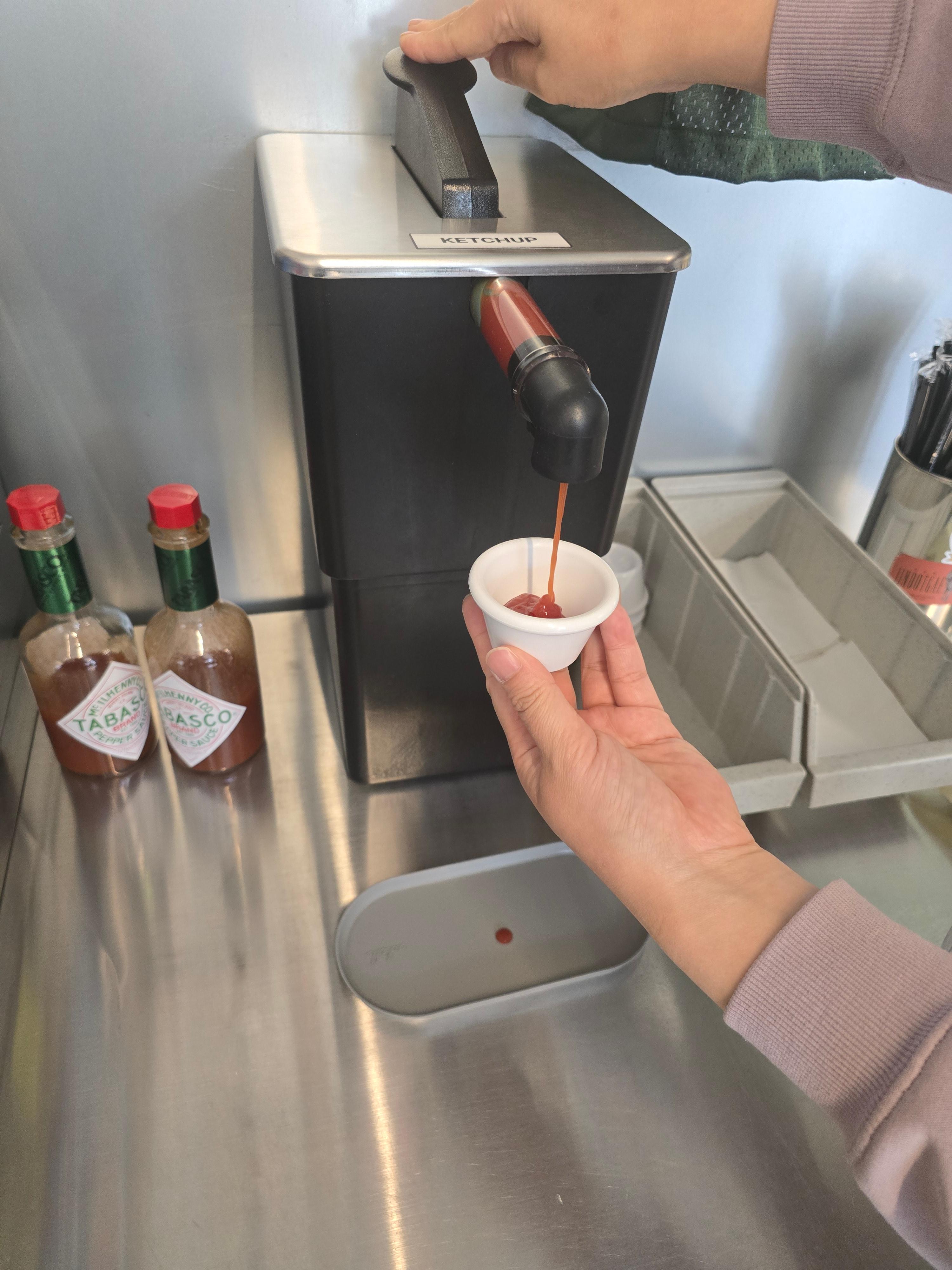 토마토케찹과 음료수는 구석에 마련된 셀프바에서 이용이 가능하다. (음료 무한리필...^^)