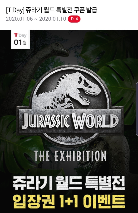 헐 ㅋㅋ 얼마전 T데이 1월 혜택을 통해 "쥬라기월드 특별전" 1+1쿠폰 혜택을 포스팅했었는데, 11번가에서 9,900원 특별 할인 이벤트를 진행중이다. ㅋㅋ 바로 구입!!