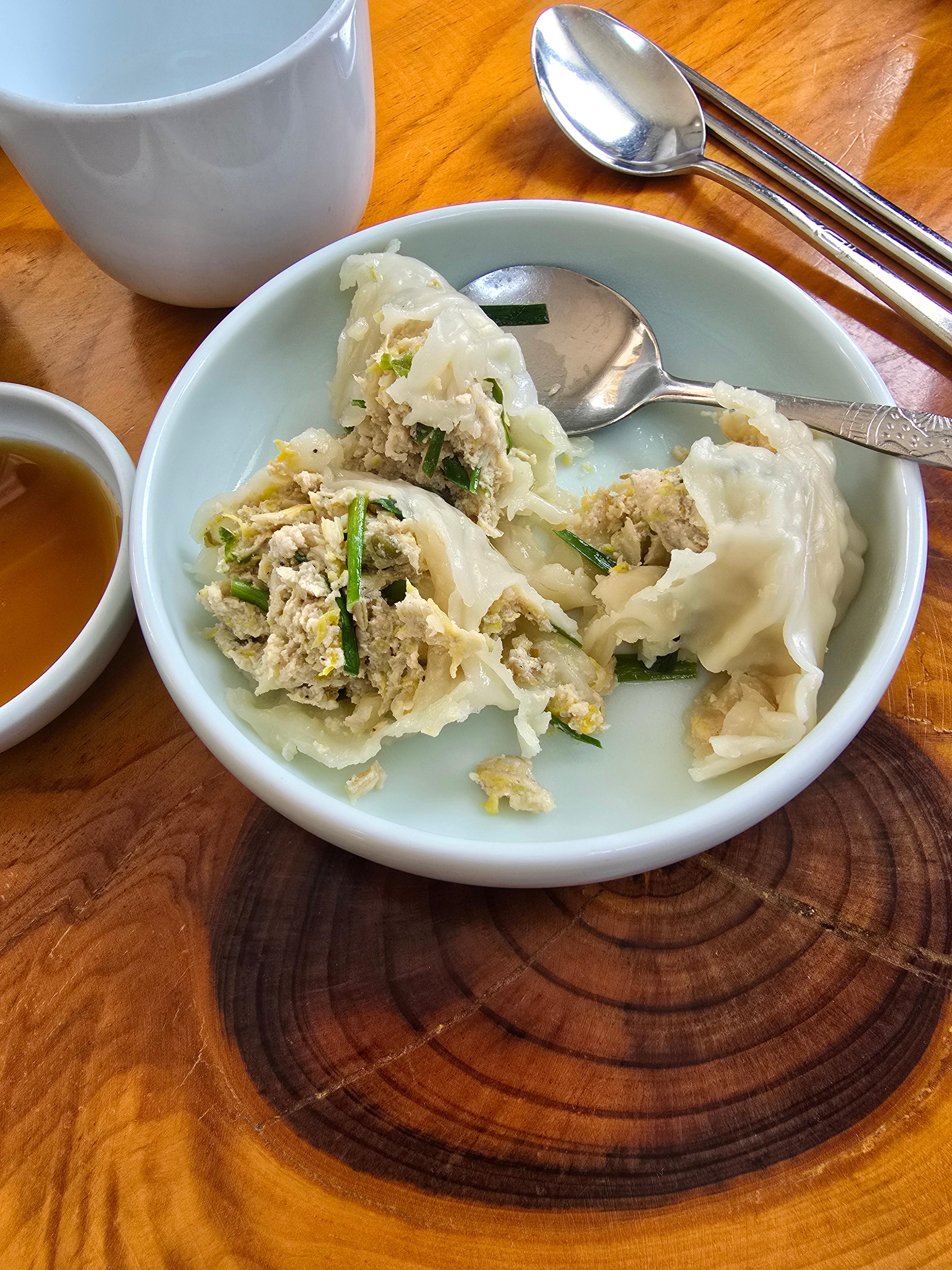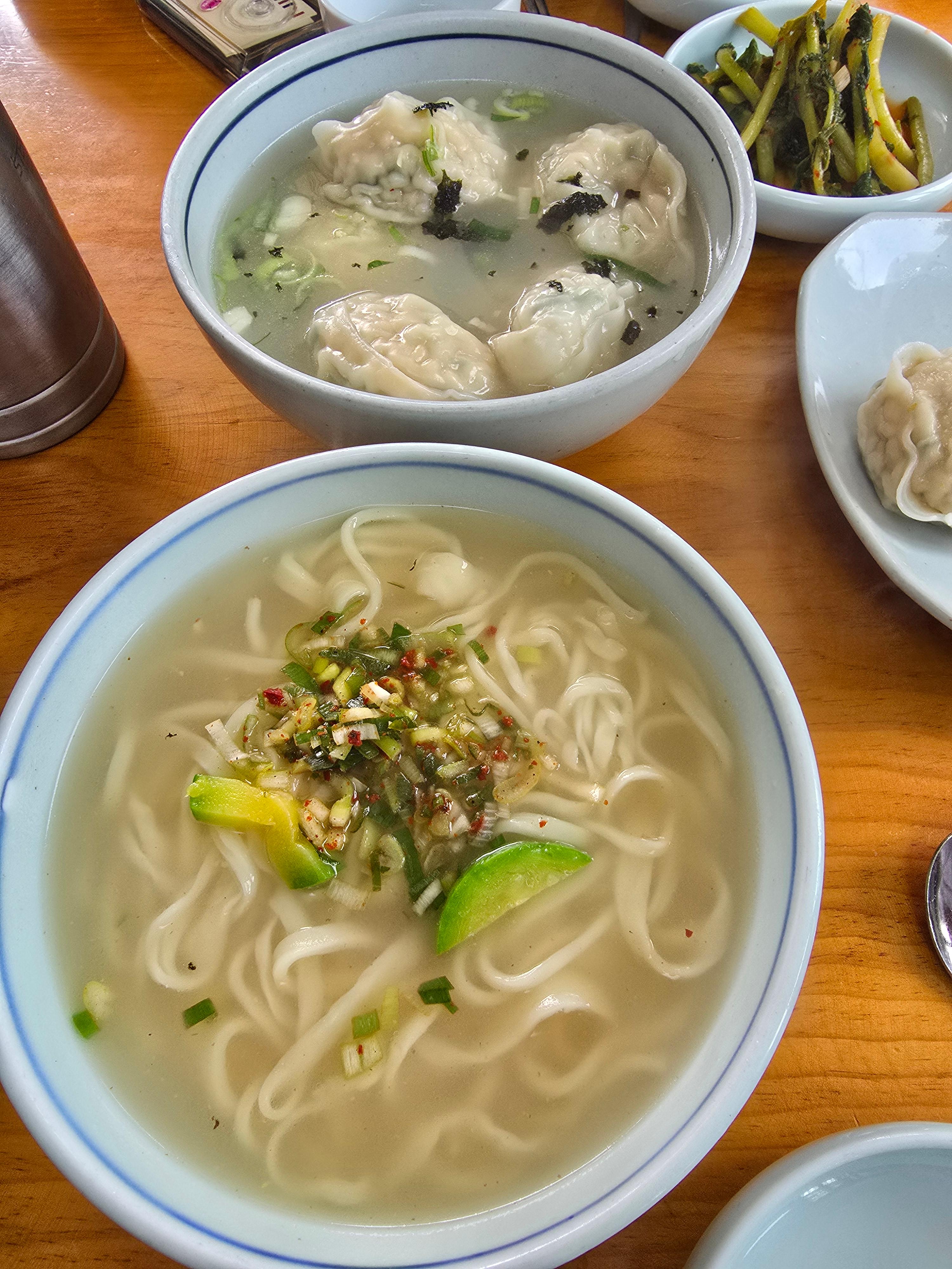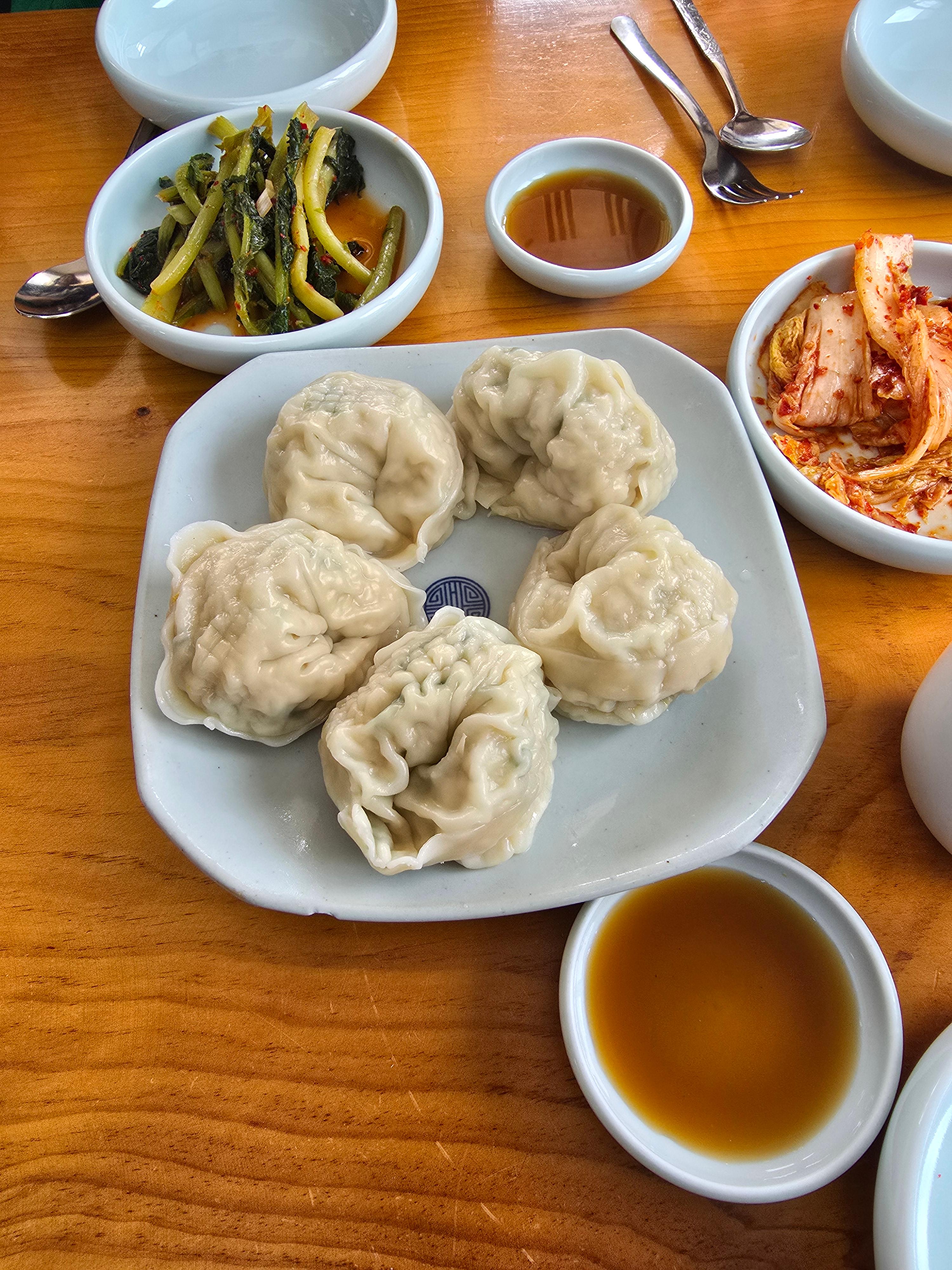 그래서 만둣굿, 칼국수, 고기만두 이렇게 주문하였다. 2층 전망 좋은 곳에 자리를 잡고 만둣국과 칼국수가 나오기를 기다렸다.