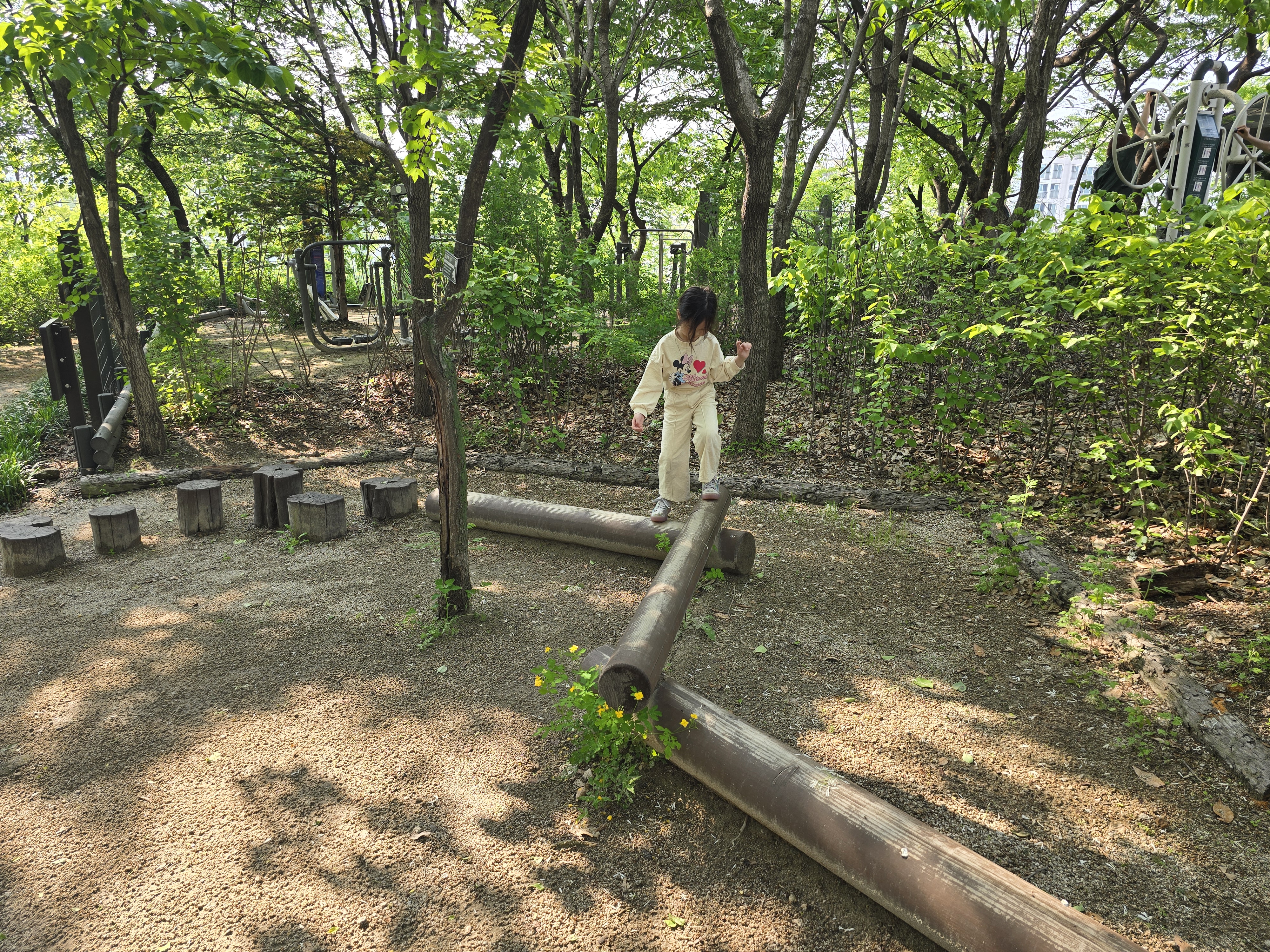 오동숲속도서관이니, 숲속 답게 유아숲체험이 있다 ㅋㅋㅋ 간단한 줄타기와 그물망 중심잡기 등 ㅋㅋㅋ놀이조차도 정말 숲과 어우러진 자연친화적인 놀이들이었다. 그래도 아이들은 좋아함~